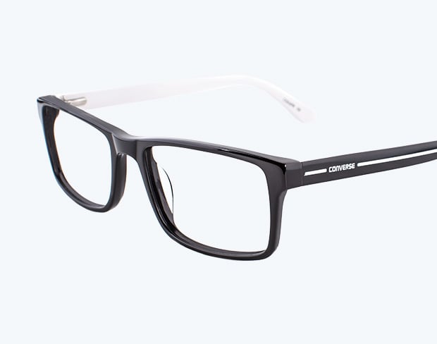A chunky, angular men’s monochrome look is just the right statement. Shiny black acetate is perfectly offset by the iconic Converse stripe in white to match your favourite chucks.